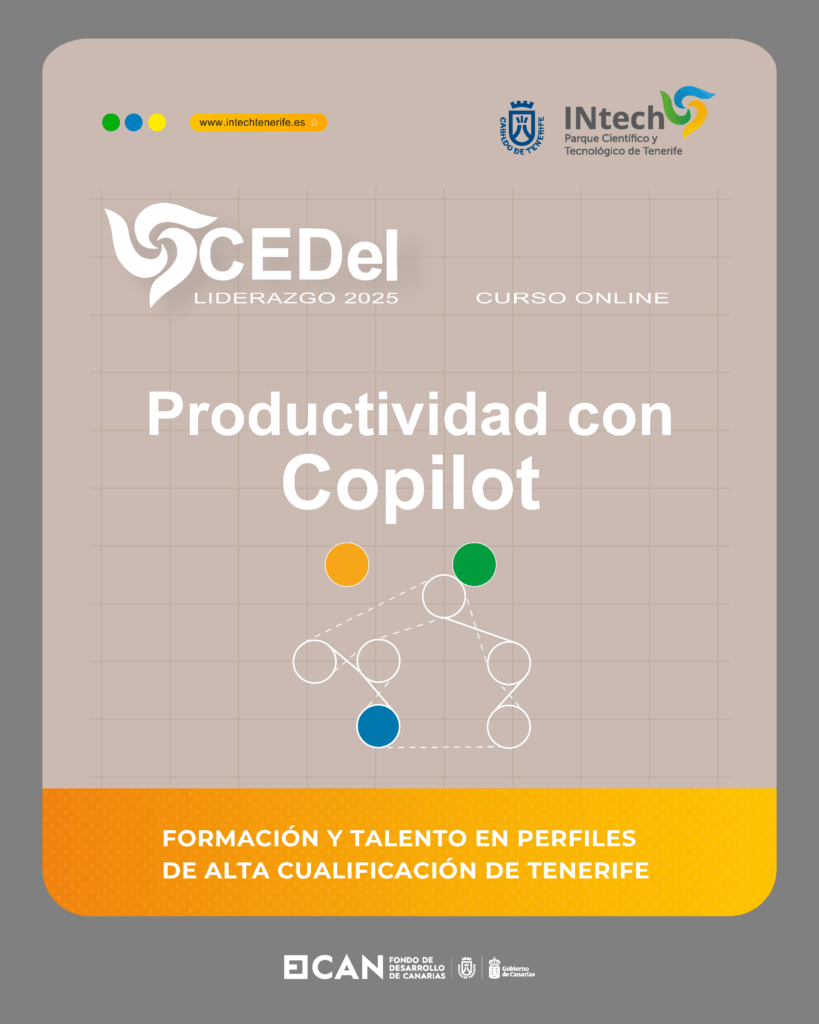 El Parque Científico y Tecnológico de Tenerife (PCTT) abre la inscripción para la formación especializada “Productividad con Copilot (certificada por Microsoft)”, incluida en el Programa CEDeI Liderazgo 2025-2026. Este curso online, de 11 horas de duración, está enfocado en mejorar la eficiencia y el rendimiento en el entorno profesional mediante el uso de herramientas avanzadas de inteligencia artificial como Copilot. Las personas participantes podrán optar a certificación oficial de Microsoft, que avala las competencias adquiridas. Las plazas son limitadas y se adjudicarán por orden de inscripción, debiendo completarse la formación antes del 15 de mayo de 2026